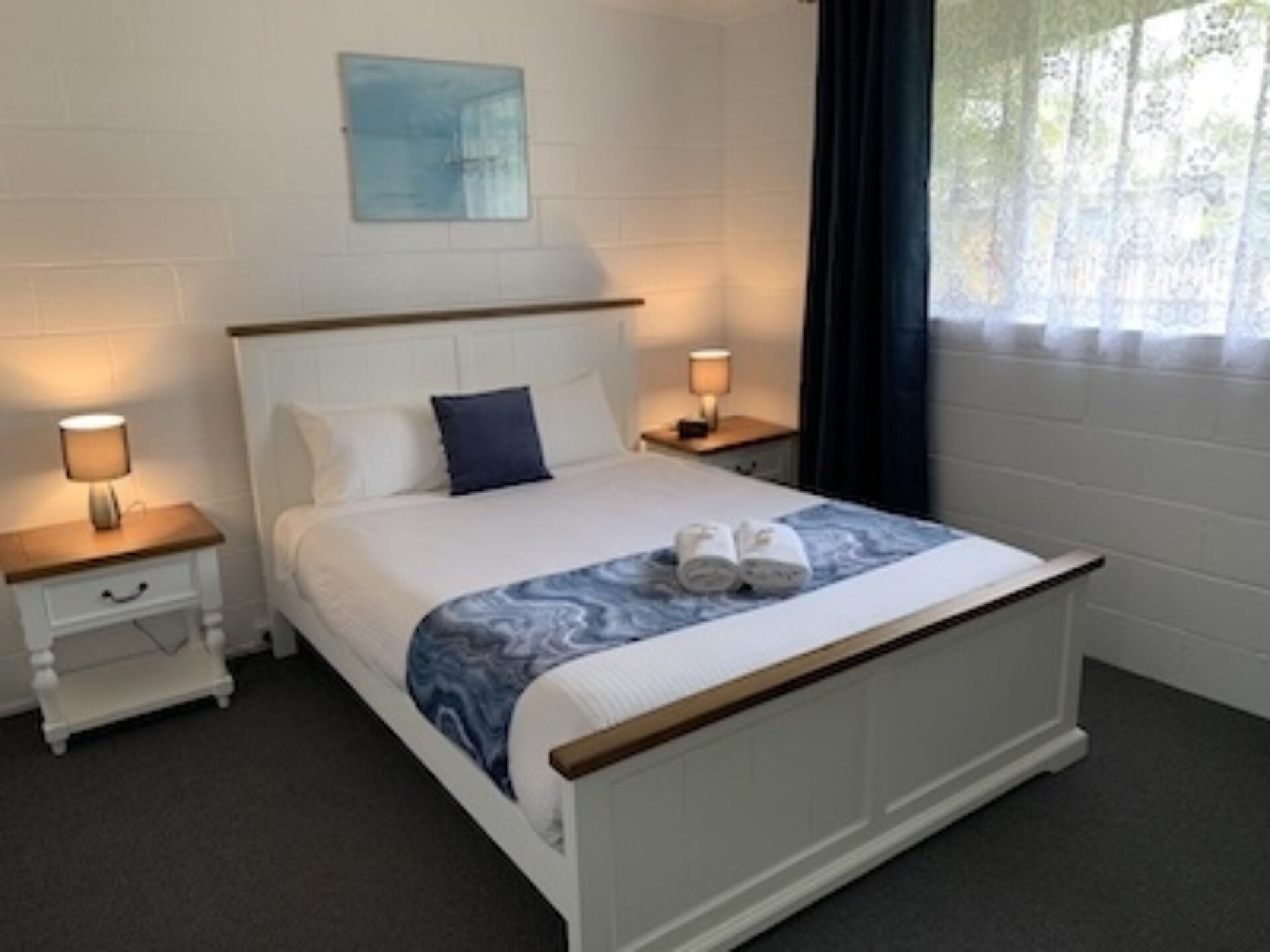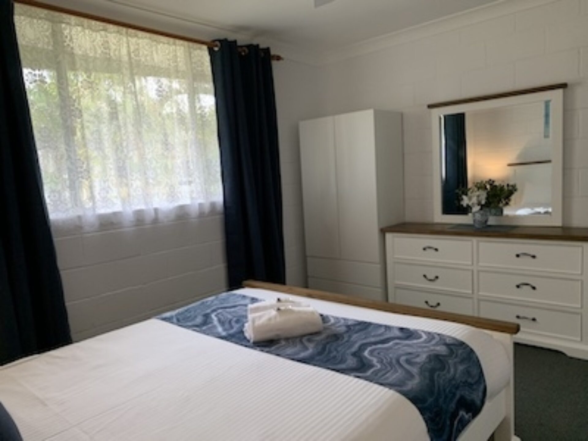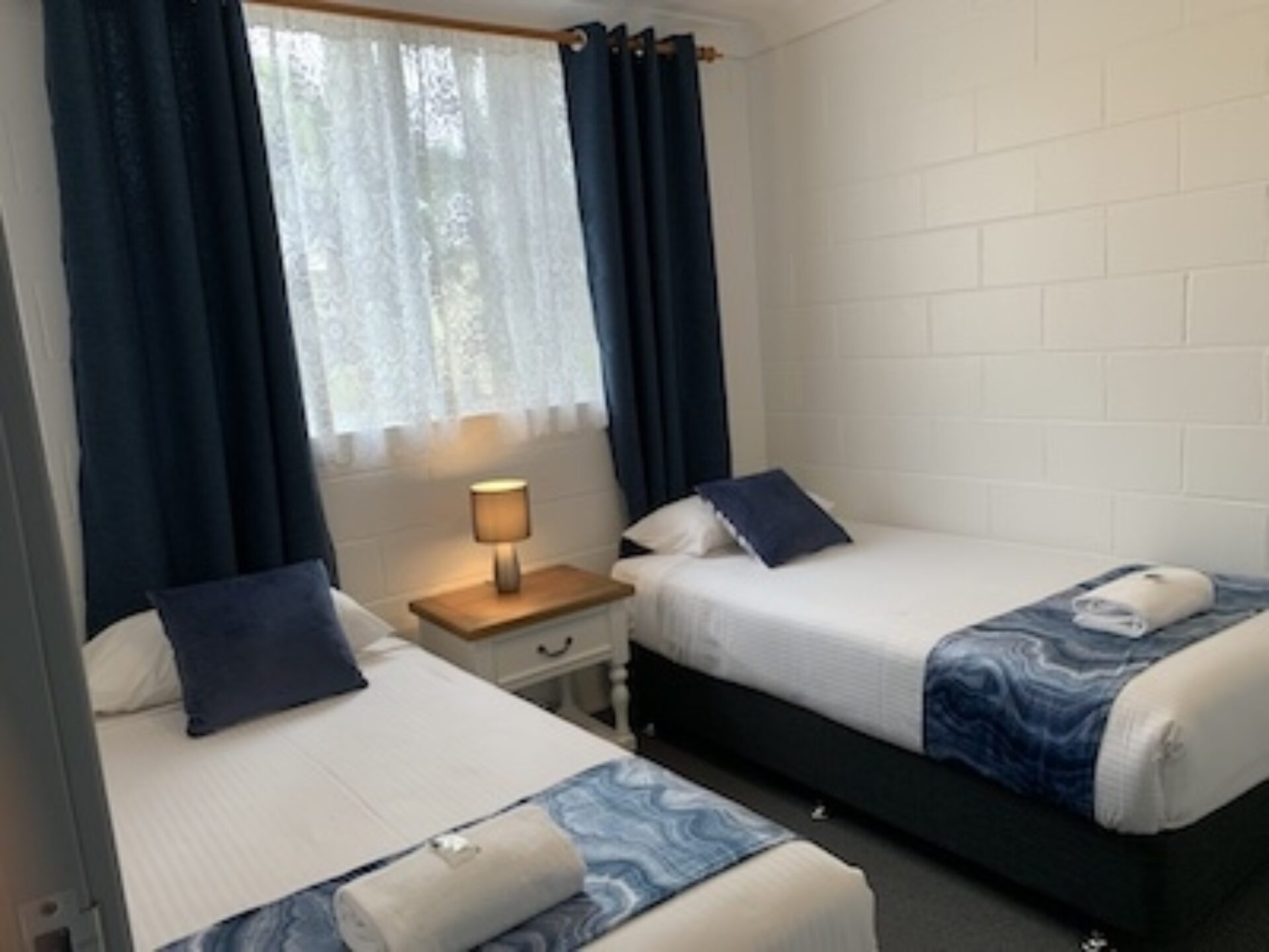 Ideal for families or small groups, this two-bedroom unit sleeps up to five guests with a queen bed, single bed, and bunk beds across two rooms. It features a separate lounge and private bathroom. The full kitchen offers gas oven and stovetop, microwave, toaster, kettle and a full size fridge for easy meal prep. With reverse cycle air-conditioning, fan, TV, and dining space, it offers a comfortable and practical stay.