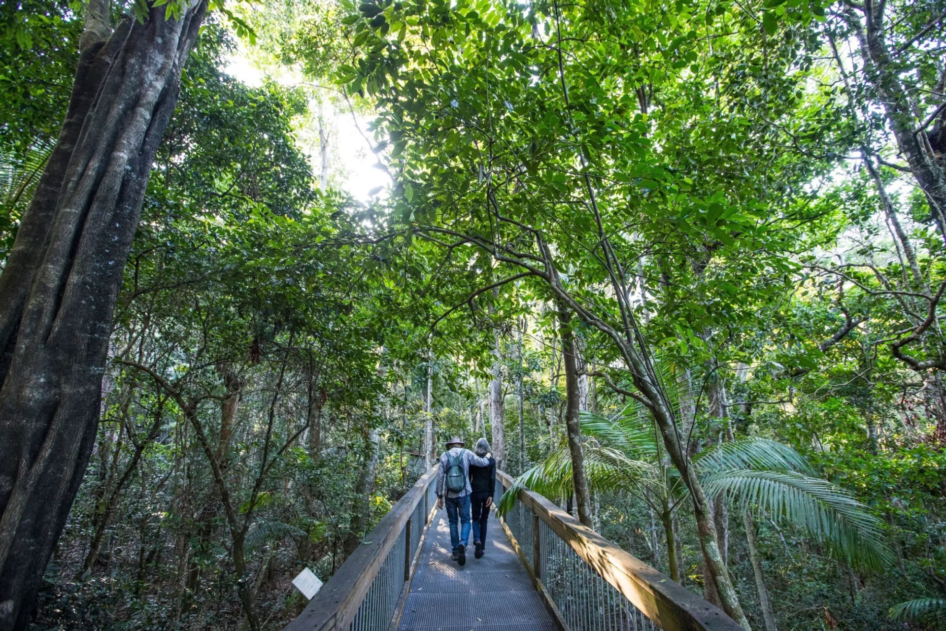 When the midday sun gets high, escape to the shade of Sea Acres Rainforest Centre, just a few minutes from town. A raised boardwalk winds through dense subtropical forest, alive with birdsong and the scent of eucalyptus. The air is cooler here, filtered through green light, and you can easily lose an hour or two exploring the trails or enjoying a coffee at the café tucked among the trees.